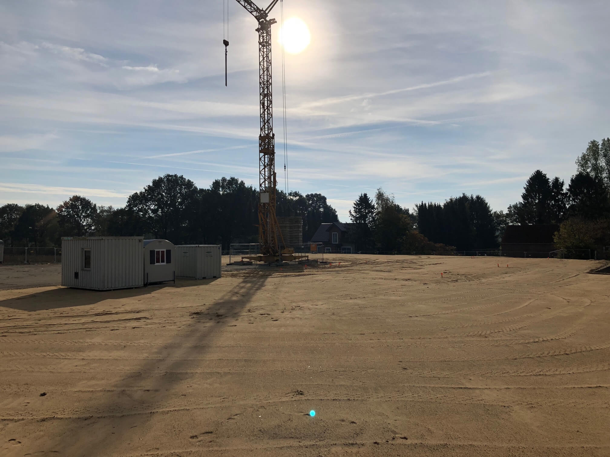 Vor einigen Tagen wurde die Baustelle eingerichtet. Neben dem Kran stehen bereits ein paar Container zur Lagerung von