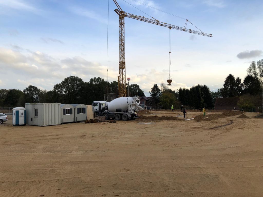 Zur Zeit werden die Kanal- und Leerrohre für die Abflüsse und Zuleitungen der Energieversorger gelegt.Viel Arbeit, von der man momentan aus der Ferne und vor allem später, nach dem die Sohle geschüttet wurde, kaum noch etwas sehen kann.